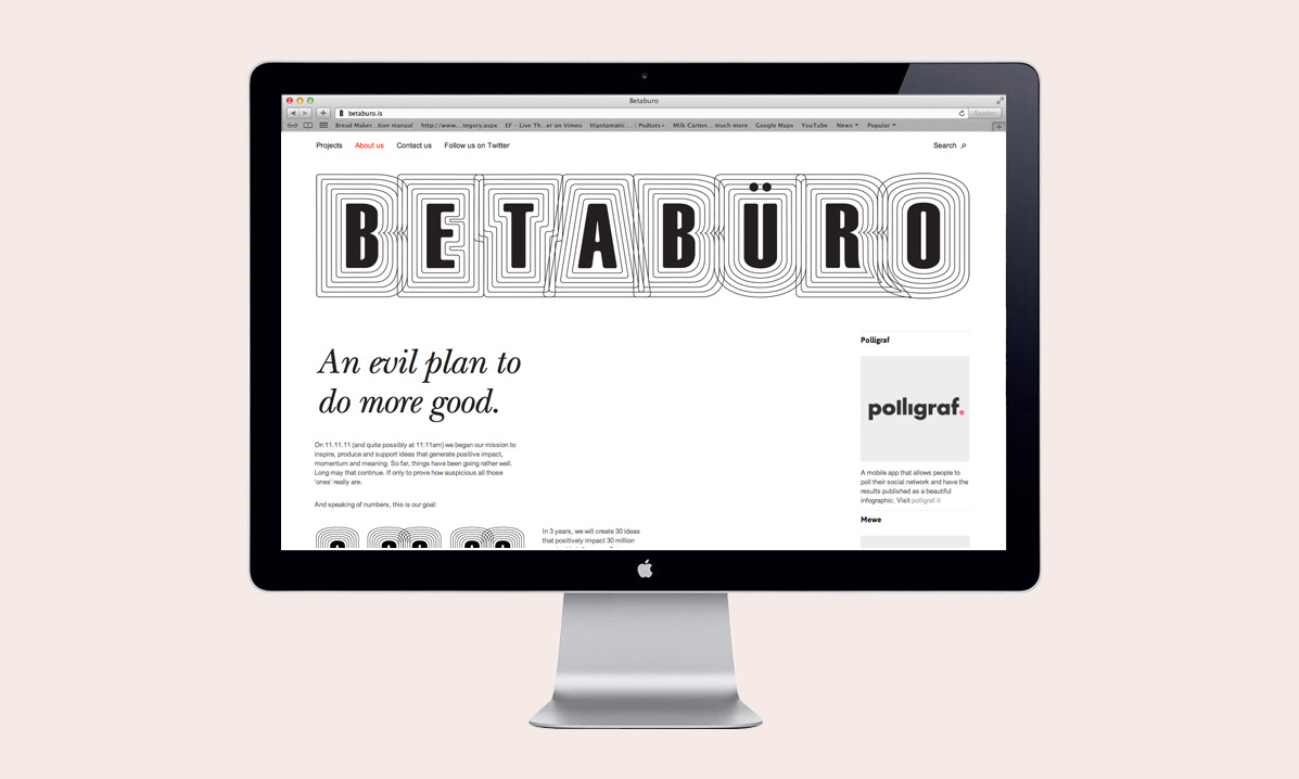 Brand identity and just some of the projects we developed at Betabüro, the creative studio and startup lab I co-founded in London. Or as we like to call it, our evil plan to do more good.